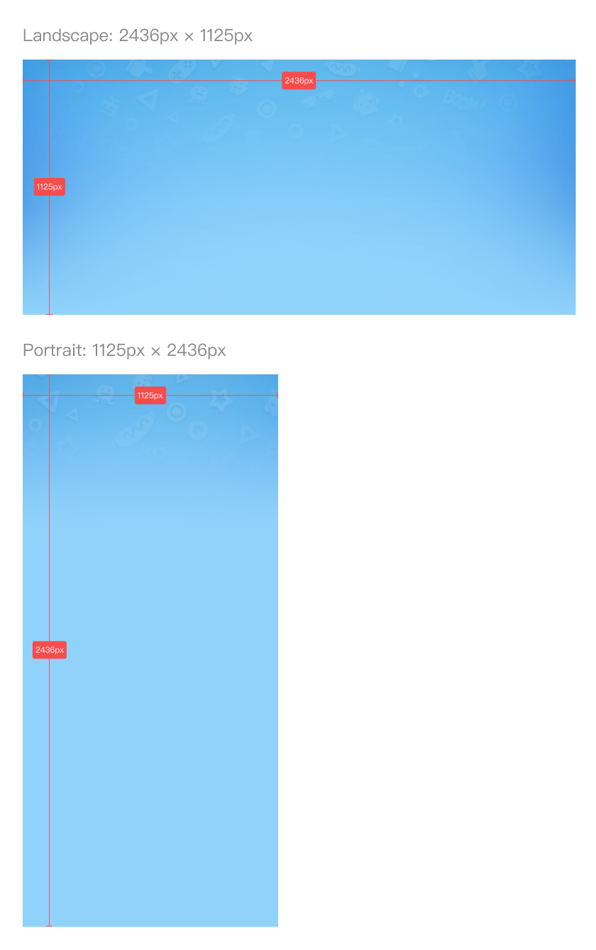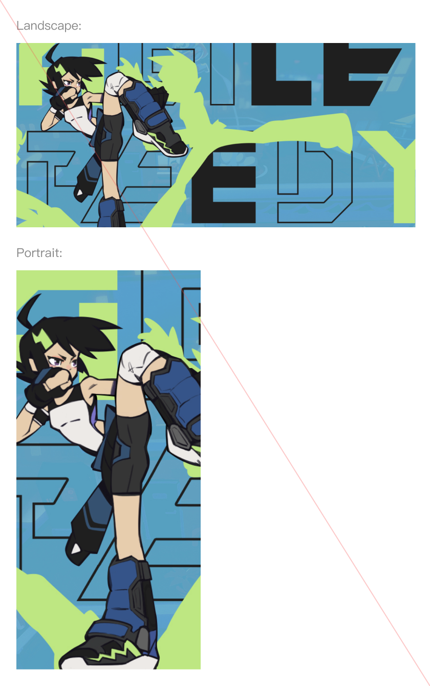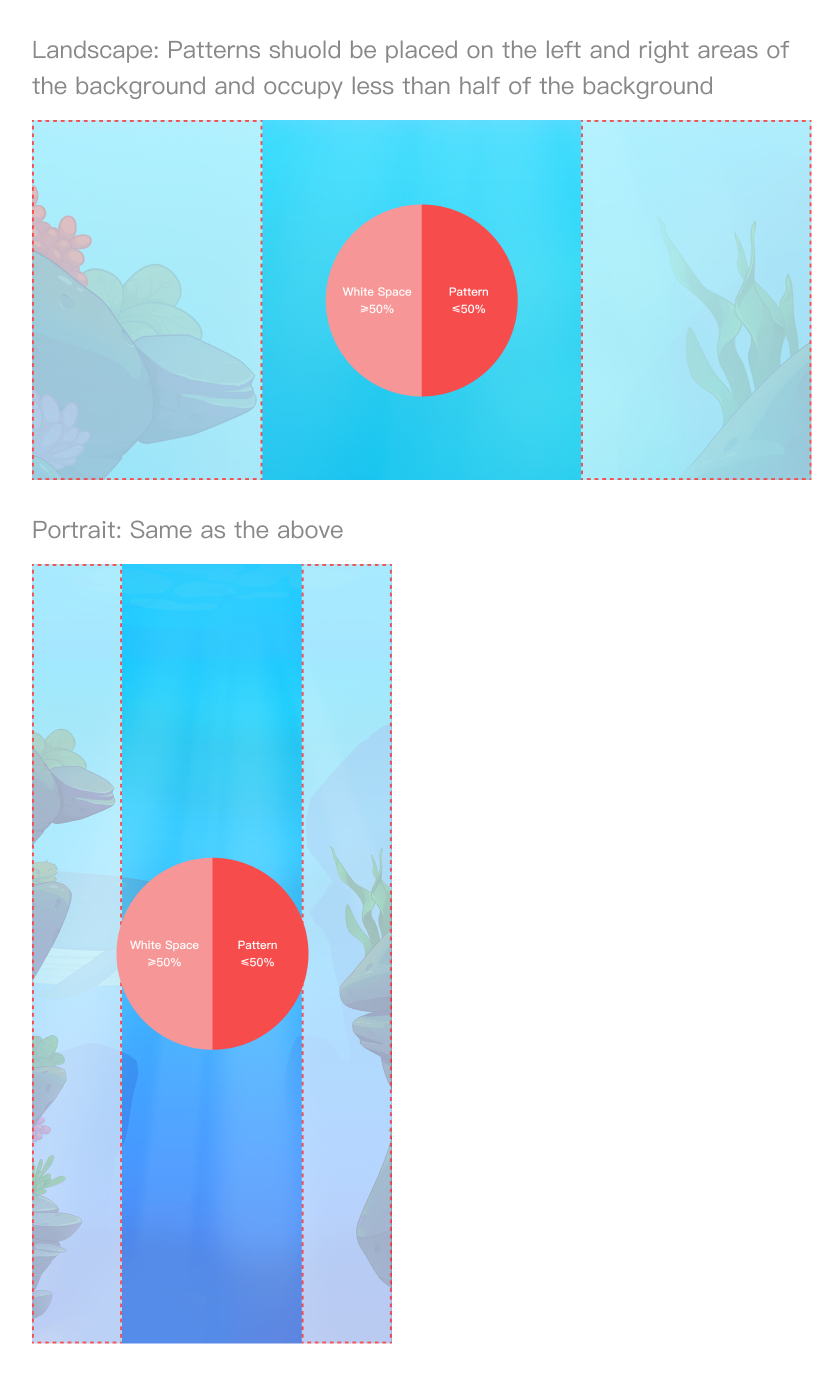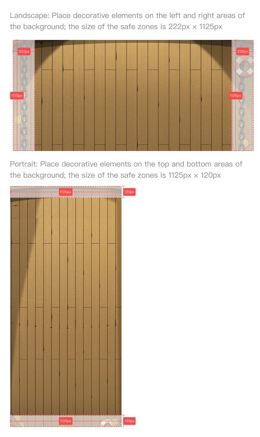 To ensure that the entirety of the illustrations in the background can be seen by the user, please keep the illustrations within the safe zones defined below.