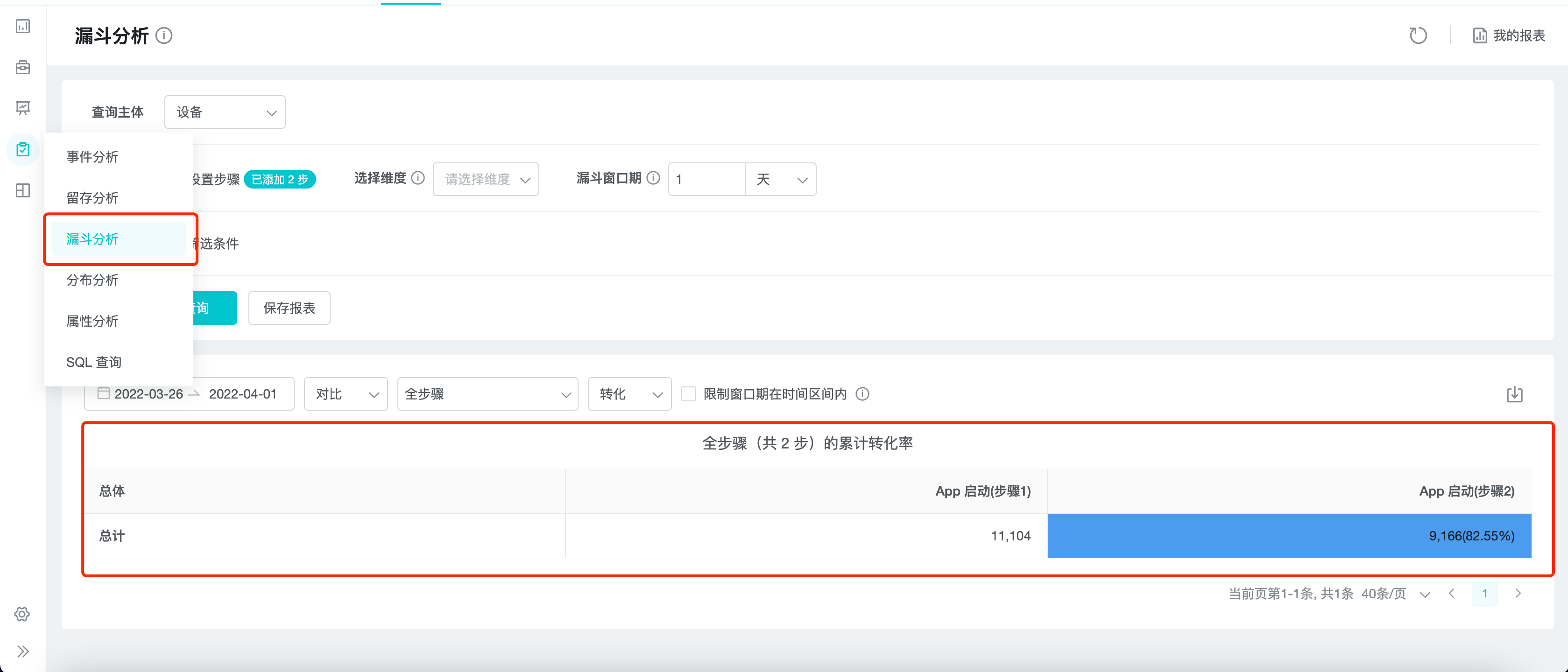 After the buried point is put on line, we use "Event" and "Dashboard" functions to analyze the process of "users losing users from opening the app to actually creating roles", as shown in the following figure.