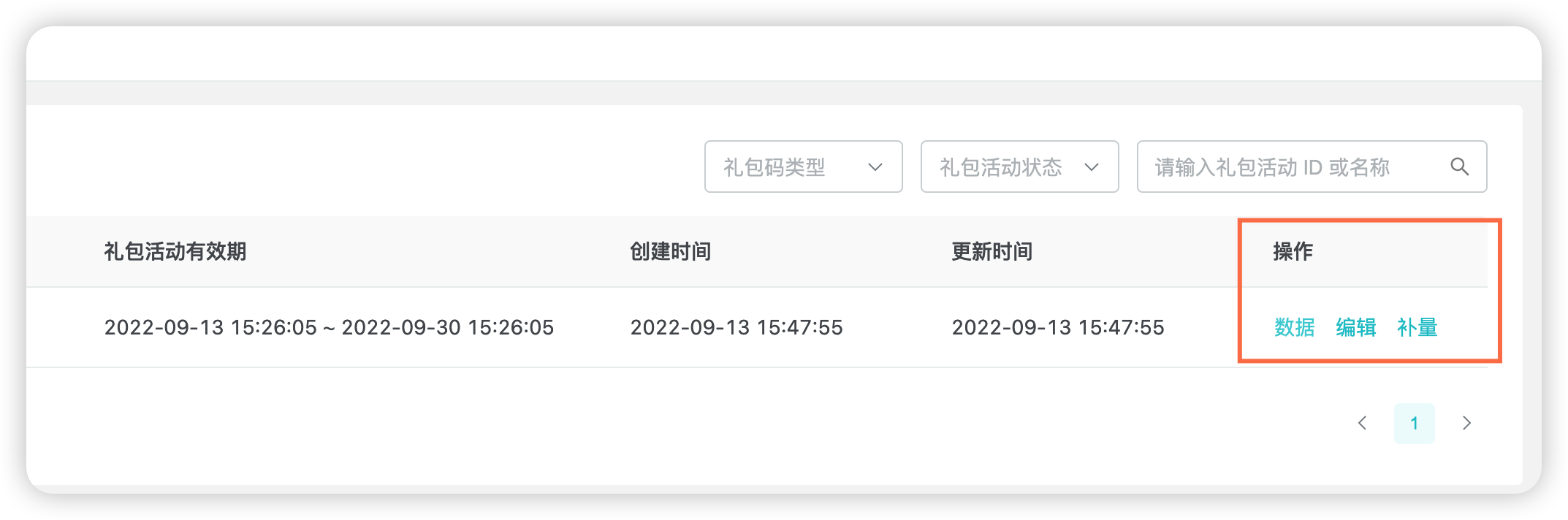 前往礼包系统首页,点击 「数据」 查看历史生成记录